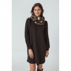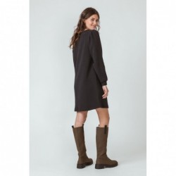 A-line, above-the-knee dress made of textured organic cotton. It features a round neck and long sleeves. In lilac. Organic cotton is grown using methods and materials that have a low environmental impact. This means that toxic fertilizers and pesticides are not used, and soil fertility is maintained. The model wears a size 38 and is 1.73 m tall.