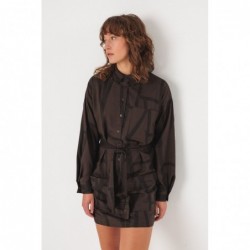 Short shirt dress with a button-down front and classic collar, complete with a tab fastening. This style features a removable belt.