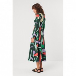 Stretch organic cotton midi dress with long sleeves and a V-neck.