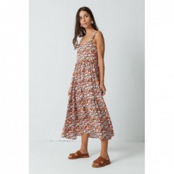 Flared midi dress. Square neckline, thin straps, and side pockets. Side zip fastening. Flowy crepe fabric. Floral print.