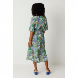 Ecovero viscose midi dress with a relaxed fit and tie belt. Features a V-neck, short raglan sleeves, and practical side seam pockets. Floral print.
