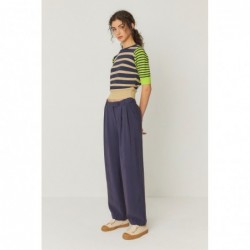 Crew neck sweater with 3/4 sleeves and ribbed knit trim at the neck, waist and cuffs.
