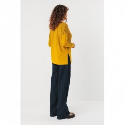 Loose boat-neck, long-sleeved T-shirt with an asymmetrical hem and a slit on one side.