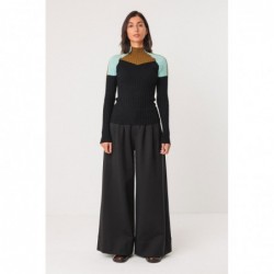 Long-sleeved T-shirt in fine ribbed knit with a high neck and contrasting color patches.