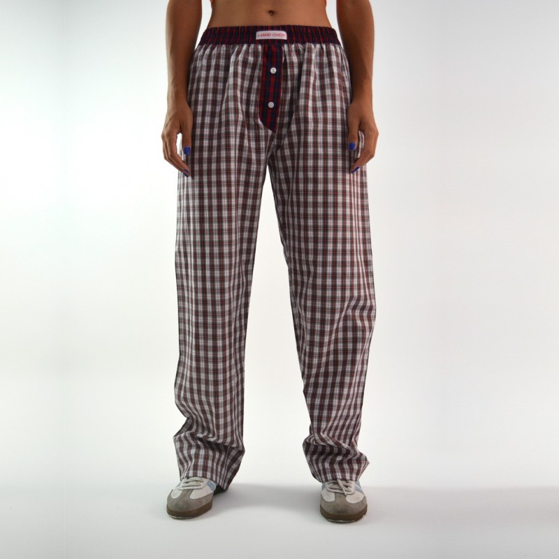 Jaimito Jaimito. You're handsome. But you know it yourself. And that's the worst part. When your Instagram isn't filled with DMs from girls, call me. In the meantime, you'll be just another ex. These unisex, high-waisted long pants feature an elastic waist and front button closure. The garment has an oversized fit. Measures: The model is 1.70 cm (5'7") and wears size S by Hand Over. Bust: 86 cm (34 in) Waist: 66 cm (26 in) Hip: 95 cm (37 in)