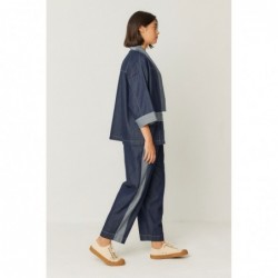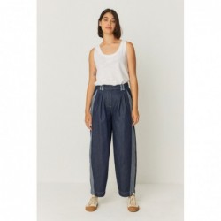 Casual, high-waisted trousers with side pockets and a front zip closure.