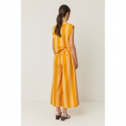 Palazzo pants with elastic waistband, self-tie belt, and front pockets.