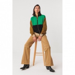 Straight-leg trousers with contrasting topstitching, side pockets, and a front zip fly.