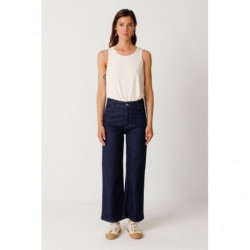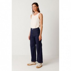 Made in Spain from organic stretch cotton. Straight-leg trousers with a fixed waistband, front pockets, and a button-front fastening.
