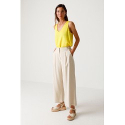 Wide-leg trousers with a pleat at the front, practical slanted pockets and a zip fly.