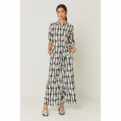 Loose-fitting boyfriend-style shirt with a classic collar, short sleeves, and a button-down front closure.