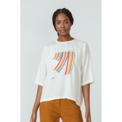 Straight-cut shirt made from soft TENCEL Modal, featuring a round neck, short sleeves, and a front placement print from our collaboration with artist Amber Vittoria. TENCEL Modal fibers are extracted from an environmentally responsible process that is energy self-sufficient and recovers byproducts from the wood's component parts. The model wears a size 38 and is 1.80 m tall.