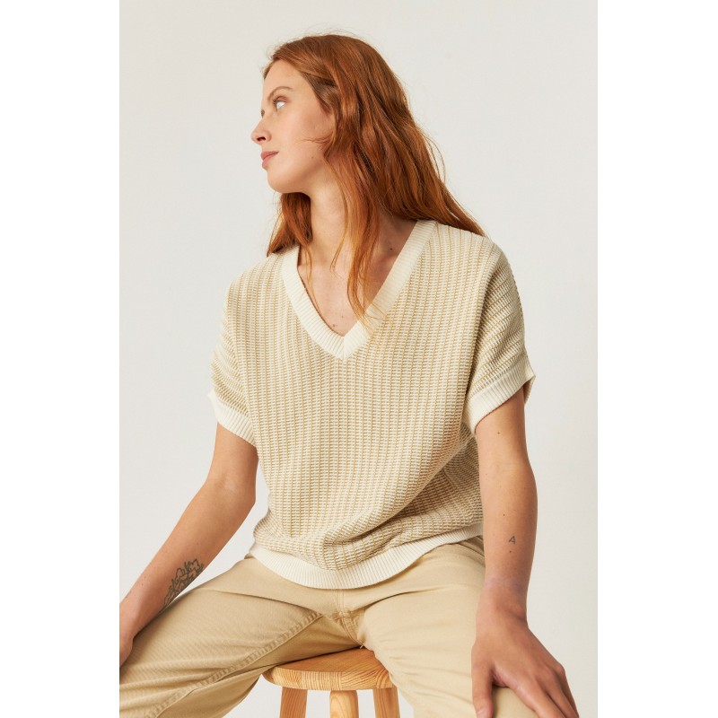 Short-sleeved, V-neck T-shirt made of organic cotton jersey.