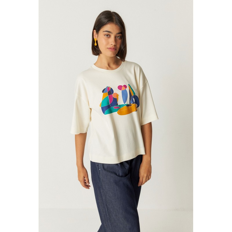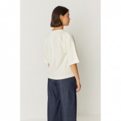Loose-fitting short-sleeved T-shirt with a round neck.