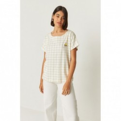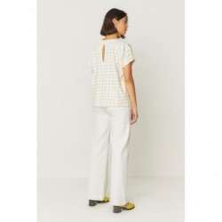 Short-sleeved organic cotton T-shirt with a round neckline and a small decorative opening at the back.