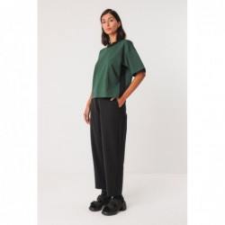 Loose-fitting cropped T-shirt with a round neckline adorned with a contrasting stripe. Offset shoulder seams and short sleeves.