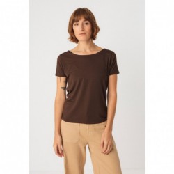 Slim-fitting, short-sleeved T-shirt with a boat neck.