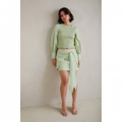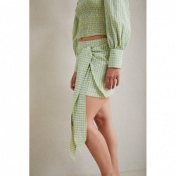 Mini culotte. Front knot with bow. Invisible zipper closure. This mini skirt features an elegant decorative front knot with bow and an invisible zipper closure. Made with quality materials, its modern and feminine design will make you stand out on any occasion. Choose your usual size. The model is 172 cm tall and wears a size S. You can pair it with the Solana Gathered Top.