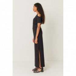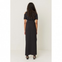 Long straight skirt with elastic waist and side slits.