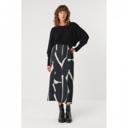 Pleated fabric flared midi skirt with elastic waistband for easy on and off.