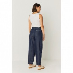 Sleeveless T-shirt with a deep round neckline decorated with ribbed knit.