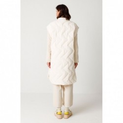 Long, sleeveless quilted jacket made with recycled nylon and Dupont Ecodown recycled filling. Contrasting stitching.