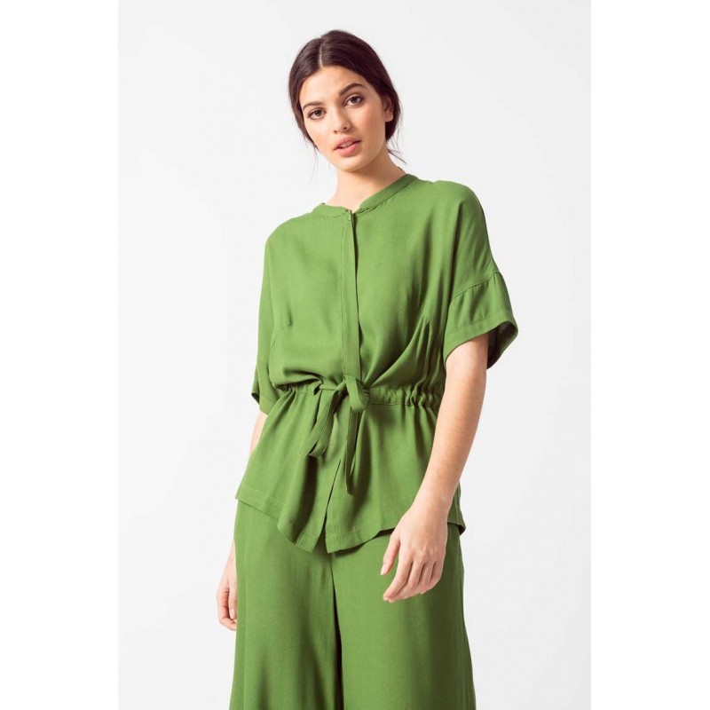 Ideal con los pantalones DONA para un estilo monocromático, la camiseta abotonada ORIA cuenta con una cintura ajustable. La sensación del Viscose Ecovero es fresca incluso en los días más calurosos de verano.