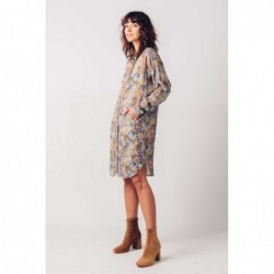 Camisa larga a la altura de las caderas, manga larga. Estampado multicolor.