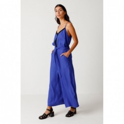 Cómodo pantalón palazzo con unos prácticos bolsillos delanteros y la cintura elástica que se ajusta con un cinturón anudado.