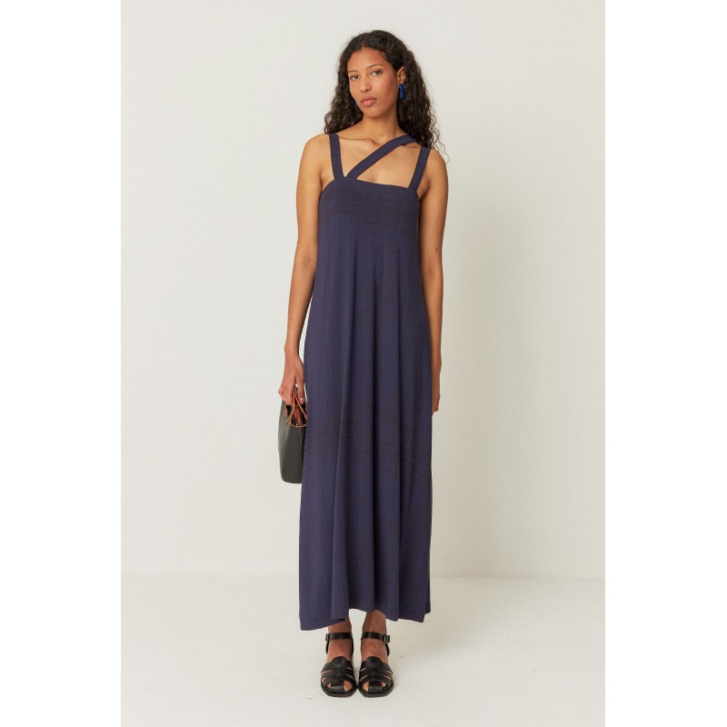 Vestido trapecio midi de tirantes hecho con algodón ecológico stretch.