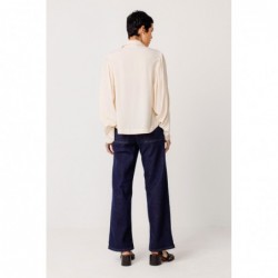 Camisa de corte recto con cuello camisero, mangas murciélago y cierre delantero de botones, con un look actual y elegante.