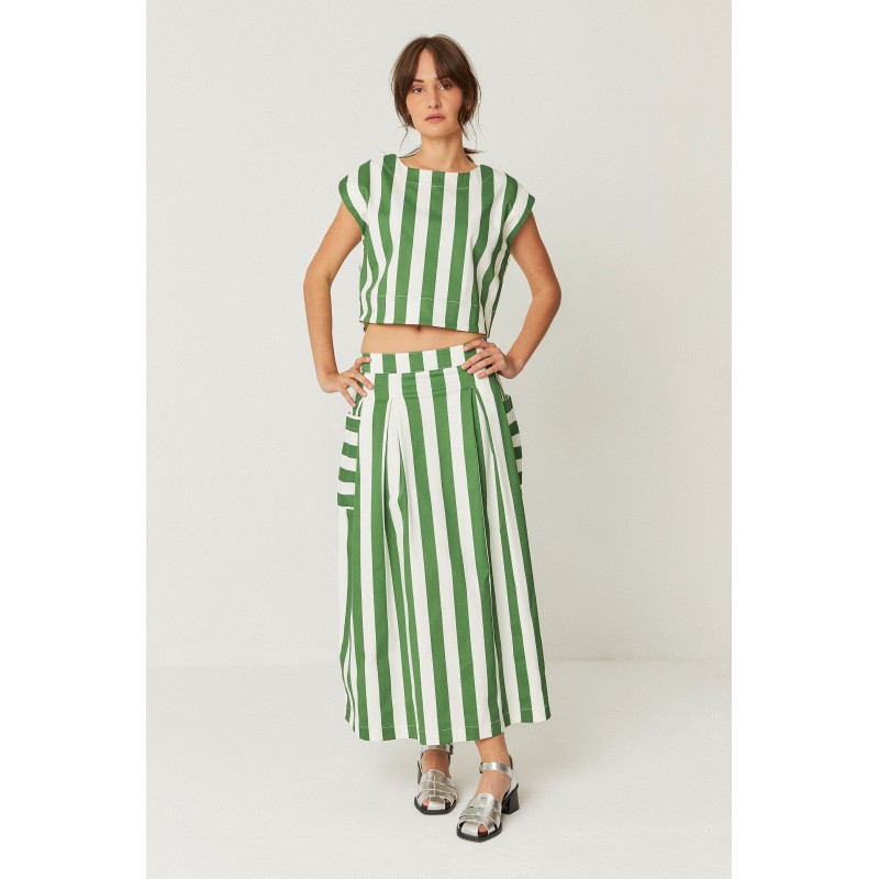 Falda midi acampanada con bolsillos de parche en los laterales.