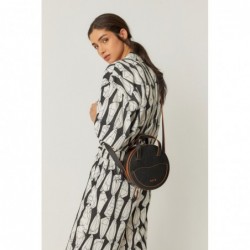 Ronde leren tas met verstelbare riem en ritssluiting. Voorzien van een leren trekker, een buitenvak en volledig gevoerd. Afmetingen: 20 x 20 cm.