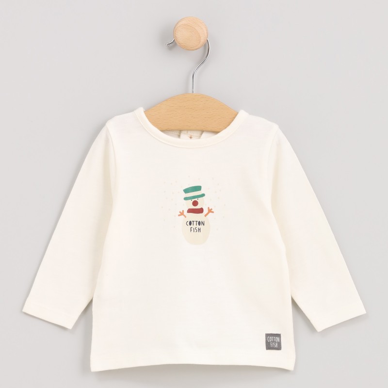 Kerstcollectie T-shirt met een sneeuwpopdetail op de voorkant, ontworpen om een feestelijke en vrolijke touch aan je dagelijkse look te geven. Gemaakt van een zachte en comfortabele stof, wordt het eenvoudige ontwerp versterkt door het kerstmotief, dat warmte en charme toevoegt. Ideaal om te combineren met een broek of rok uit de collectie tijdens het winterseizoen.