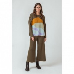Trui met ronde hals van GOTS- en FAIRTRADE-gecertificeerd biologisch katoen, met lange mouwen en een gestructureerde halslijn. Met een veelkleurig bloemenjacquard-artwork op een donkergroene achtergrond. Gecertificeerd zijn voelt geweldig. Fairtrade® is een manier van zakendoen die ervoor zorgt dat boeren bij de bron van ons katoen een eerlijke beloning krijgen; het biedt ook subsidies voor het ontwikkelen van gemeenschapsprojecten. GOTS wordt erkend als 's werelds toonaangevende verwerkingsstandaard voor textiel gemaakt van biologische vezels. Het model draagt maat 38 en is 1,73 m lang.