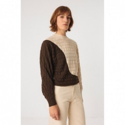 Tweekleurige semi-dikke gebreide trui, model Ledea-gots