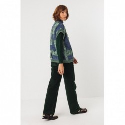 Grofgebreide, mouwloze trui met contrasterend streeppatroon en ribbreisel. Ontworpen in samenwerking met ontwerpster Martina Spetlova.