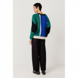 Losvallende, veelkleurige gebreide trui met een ronde hals, vleermuismouwen en een middelzware constructie. Een comfortabele, relaxte pasvorm met een vleugje kleur. Gemaakt van GOTS-gecertificeerd biologisch katoen.