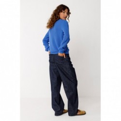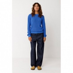 Trui met ronde hals van lichtgewicht gebreid biologisch katoen met GOTS-certificering. Voorzien van ribboorden bij de hals, manchetten en zoom.