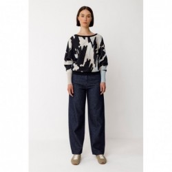 Trui met vleermuismouwen in een lichtgewicht gebreide stof van GOTS-gecertificeerd biologisch katoen. Voorzien van een V-hals aan de achterkant en ribboorden bij de hals, taille en manchetten.