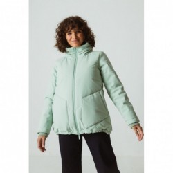Recht gewatteerd jack met een hoge kraag van gerecycled polyester met Sorona-vulling. De lange mouwen zijn afgewerkt met brede geribbelde boorden, heeft een verstelbare en afneembare capuchon bij de kraag, twee voorzakken en een ritssluiting met twee schuivers. 5000 mm waterdichtheid, 3000 g/m²/24 uur ademend vermogen. PFC-vrije waterafstotende behandeling. Celedongroen. In plaats van ze weg te gooien, kunnen plastic flessen worden hergebruikt om nieuwe kleding te maken. Deze aanpasbare en duurzame ontwerpen minimaliseren het grondstoffenverbruik bij de productie.