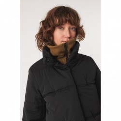 Losvallende jas met een dubbele opstaande kraag en verborgen knoopsluiting. Voorzien van Dupont Sorona-donsvulling en een waterafstotende buitenkant.