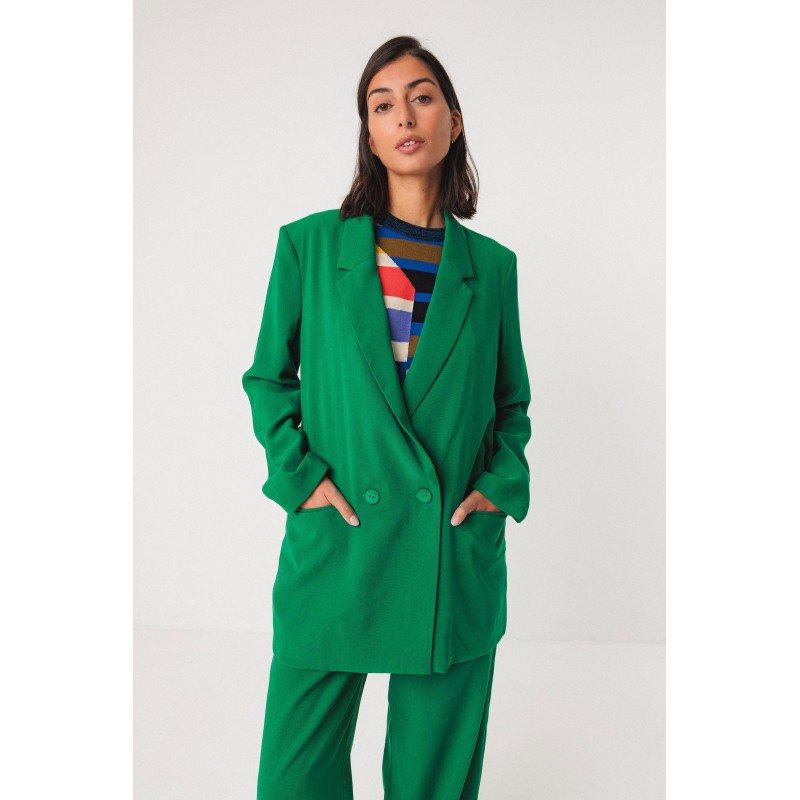Rechte blazer met lange mouwen en een reverskraag. Knoopsluiting aan de voorkant, zakken aan de voorkant en volledig gevoerd.
