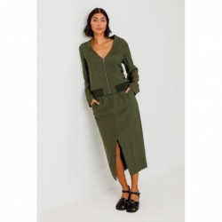 Kort bomberjack met natuurlijke schouders, kraagloos, lange mouwen, ritssluiting aan de voorkant en volledig gevoerd. Een zeer modern en veelzijdig kledingstuk.