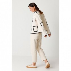 Gemaakt in Spanje. Elegant jack geïnspireerd op traditionele Baskische kaiku-jacks. Kort model met ronde hals, lange mouwen, opgestikte zakken en een knoopsluiting aan de voorkant.