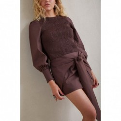 Top met geplooid lijfje. Pofmouwen met geknoopte manchetten. Knoopsluiting op de rug. Ton-sur-ton bedekte knopen. De Solana Gathered Top is een veelzijdige top met een rekbaar geplooid lijfje dat je figuur omsluit. Pofmouwen met geknoopte manchetten voegen een vleugje verfijning toe, terwijl de knoopsluiting op de rug zorgt voor draagcomfort. Perfect voor elke gelegenheid. Kies je gebruikelijke maat. Het model is 172 cm lang en draagt maat S. Je kunt deze top combineren met de Solana Knot Skirt.