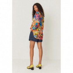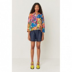 Overhemd met afgeronde zoom en driekwartmouwen. Klassieke kraag en knoopsluiting aan de voorkant.