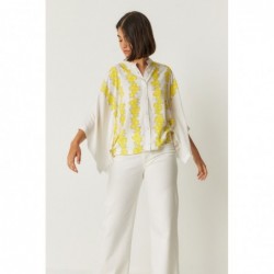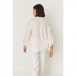 Oversized shirt met 3/4 kimono mouwen, een opstaande kraag en een knoopsluiting aan de voorkant.