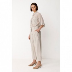 Oversized boyfriend-shirt met een klassieke kraag, korte mouwen en een knoopsluiting aan de voorkant. De kraag, de knoopsluiting en de borstzakken zijn gemaakt van contrasterende stof.