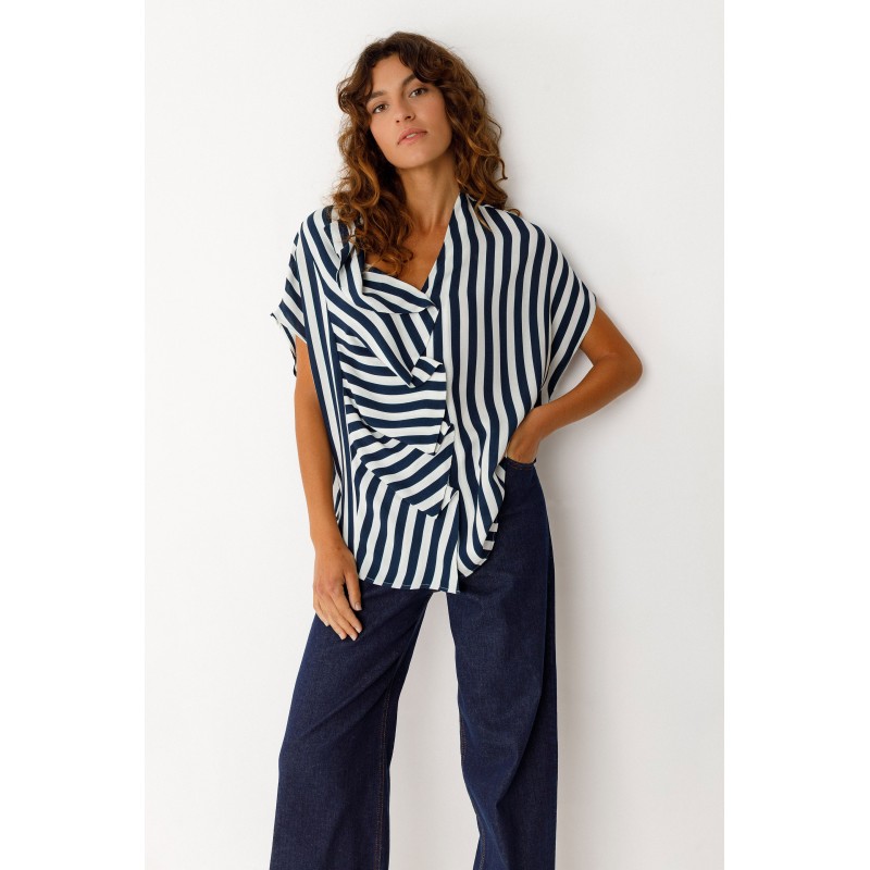 Losvallend, mouwloos shirt met verlaagde schouders en een knoopsluiting aan de voorkant met een geplooid effect.